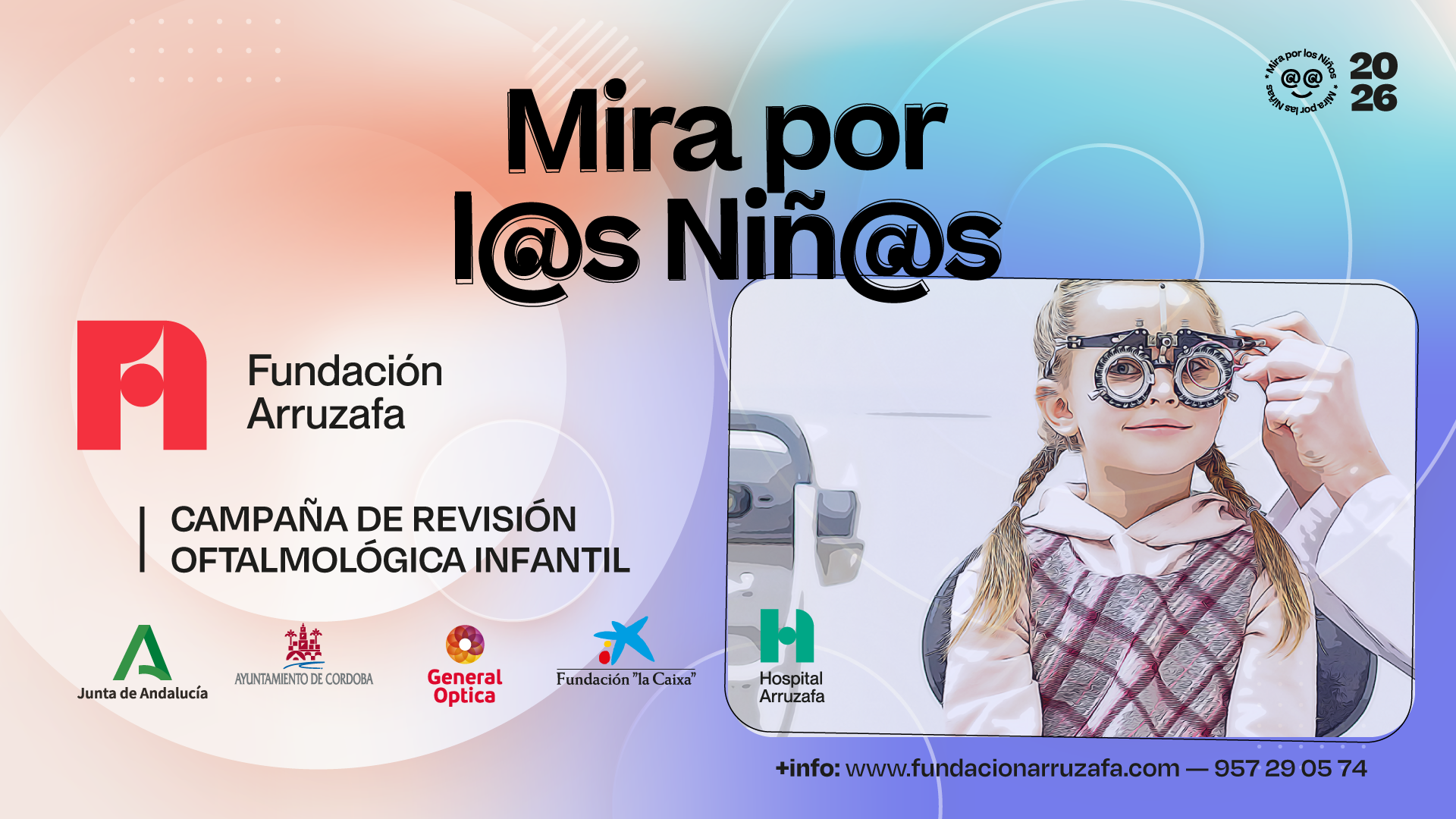 CÓRDOBA, 25 febrero 2026.- La Fundación Arruzafa pone a disposición de todos los colegios interesados un formulario de inscripción para la campaña de revisión oftalmológica gratuita ‘Mira por l@s niñ@s 2026’, cuya vigencia cumple el 20 de marzo: FORMULARIO DE INSCRIPCIÓN