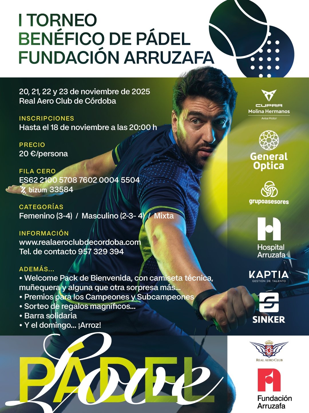 Cartel del I Torneo Benéfico de Pádel Fundación Arruzafa